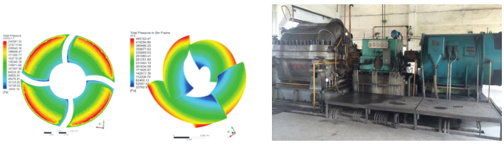 工程實施:先進行系統及管網優化,消除系統損耗,再進一步提高風機本身的效率,更換高效節能風機或更換葉輪。根據實際工況需求,基于三元流葉輪理論和空氣動力學理論重新設計風機葉片和風機蝸殼流道,通過CFD分析軟件對風機葉輪模型進行修正,使其流態更穩定,效率更高。風機進口采用分流技術,風機流道采用導流套,降低風阻和渦流,轉子部件采用精密加工,進一步提高效率。